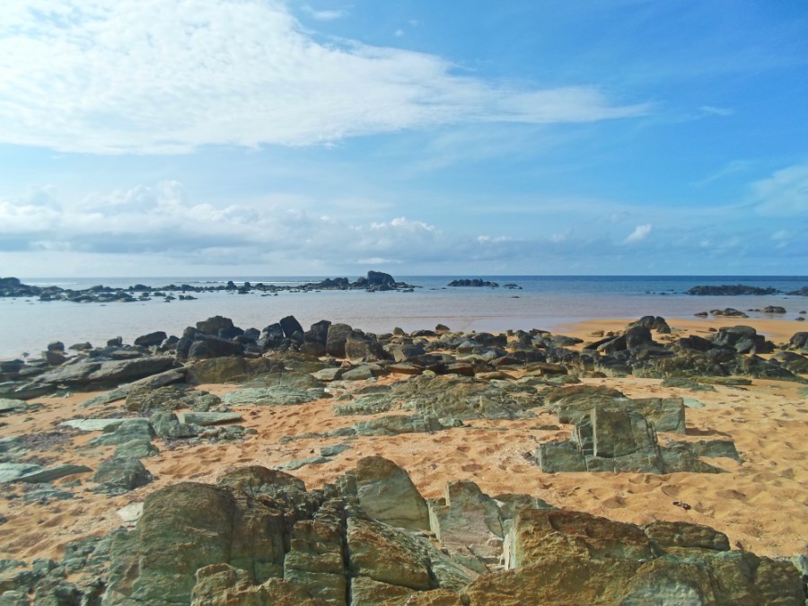 One other peaceable place with gold to the white sand seashore between two boulders of rocks.  We hiked the massive rocks and we had been welcomed by this gorgeous view of the lengthy stretch of white sand and the blue sea. Simply spectacular!